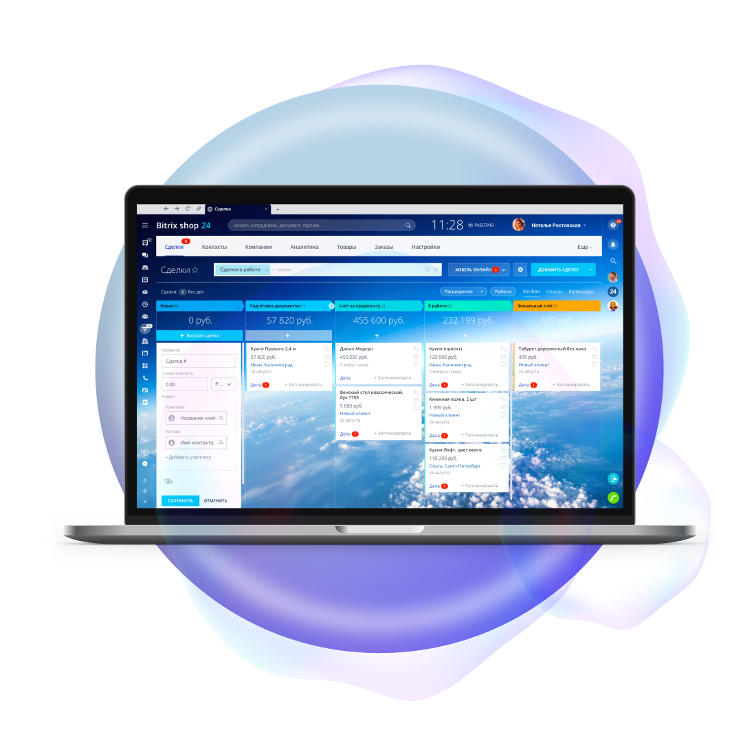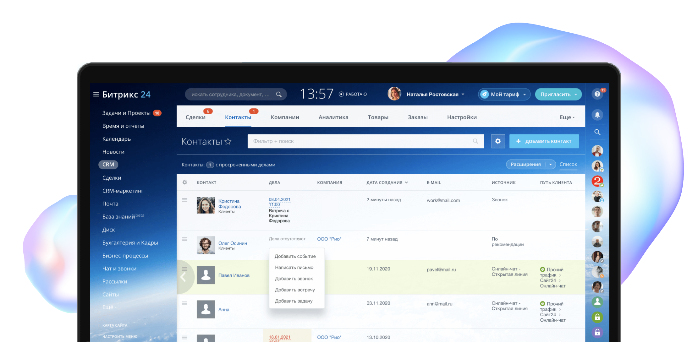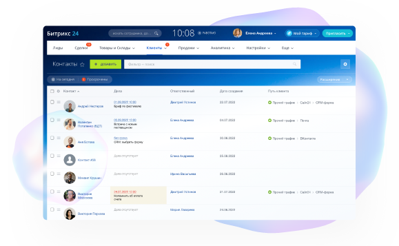 о товарах, контактах, компаниях и заказах в реальном времени. При этом работать